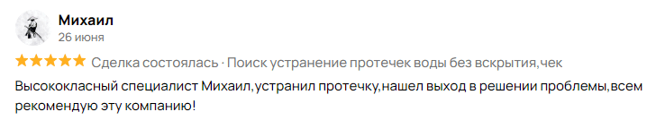 Минимальная стоимость поиска и устранения протечки в квартире от 4 000 руб., в коттедже от8 000 руб., в здание от12 000 руб. Точную стоимость определяет мастер на месте после проведения осмотра и диагностики. Именно поэтому выезд мастера бесплатный.